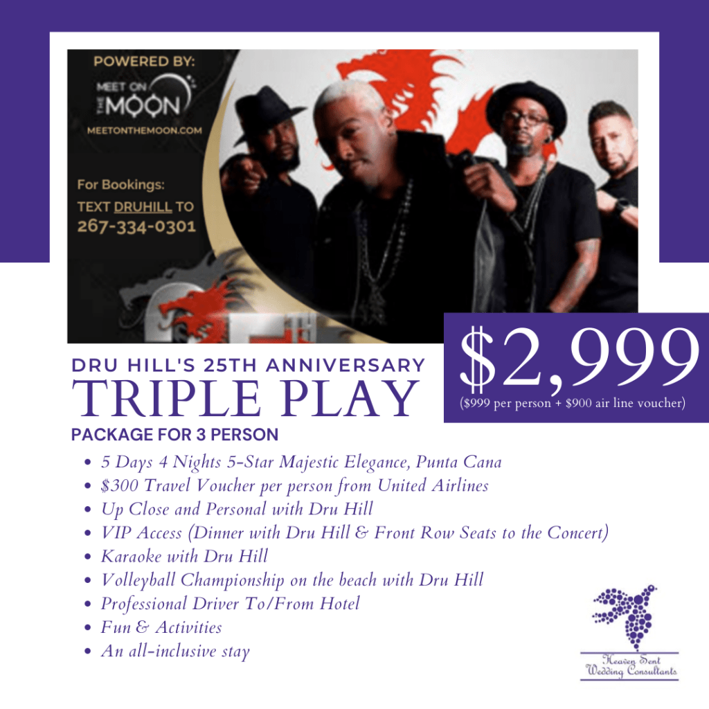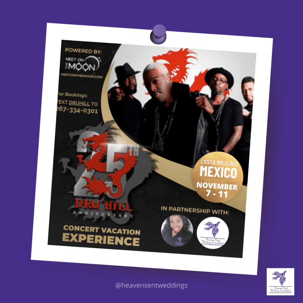Dru Hill will be celebrating its 25th Anniversary at Costa Mujeres Mexico on November 07-11, 2022. Christina Maddox the owner and founder of Heaven Sent Wedding Consultants and Travel Agency is planning this event. Experience an all-inclusive stay, VIP Access, Dinner with Dru Hill, Front row Seats to the concert, Karaoke with Dru Hill, Volleyball Championship with Dru Hill, and more fun and activities!